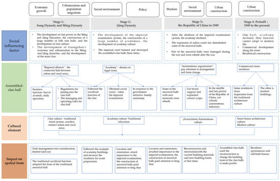 Figure 5. The development and factors influencing assembled-clan halls.