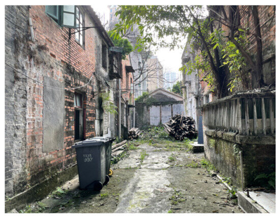 55. Huang, F.Y. The Chronicles of City Lane in Guangzhou; Guangdong People Publishing House: Guangzhou, China, 2012. [Google Scholar]