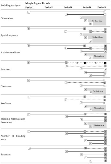 According to the above analysis, it can be observed that the layout, design and function of buildings in each stage has changed through the transformation of urban development and the changes in political, social and economic ideologies, whether it is the impact of history or of globalization today. In order to adapt to the change and impacts of various demands, the space of plots and buildings is constantly changing, but it is gratifying that at present, the urban form still retains spatial and architectural features influenced by traditional culture.