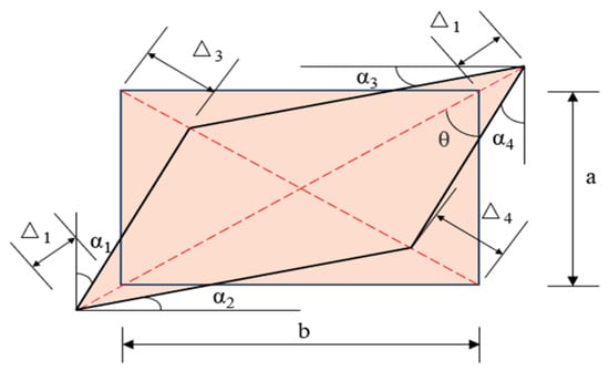 When the core region of a joint undergoes shear deformation, it transforms from a rectangular shape into a diamond shape [31]. The deformation coefficient γ of the core region is calculated using Equation (4), and a schematic diagram of the calculation is shown in Figure 16, where Δ1–Δ4 represent the displacements at the four corners of the core region, which are obtained through displacement measurements. a and b represent the lengths of the two sides of the core region. The values of γ for all beam–column joints are shown in Figure 17. It is necessary to mention that, due to human error in arranging LVDT during the experiment, the deformation data Δ of the joint core zone of the beam–column joint SI-F was too large, and γ was significantly larger than other joint specimens. Therefore, the deformation of the joint core zone of the joint was not discussed.