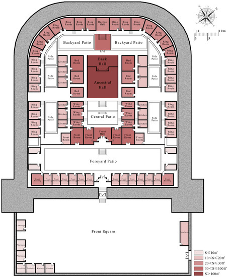 - Rao, X.; Zhou, J.; Ding, K.; Wang, J.; Fu, J.; Zhu, Q. Research on the Cultural Tracing of the Patriarchal Clan System of Traditional Buildings in the Eastern Zhejiang Province, China, Based on Space Syntax: The Case Study of Huzhai in Shaoxing. Sustainability 2022, 14, 7247. [Google Scholar] [CrossRef]
