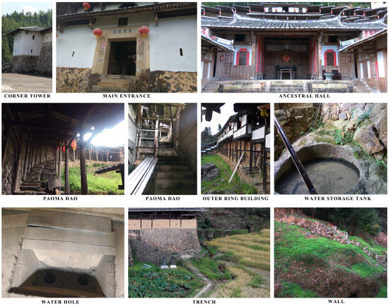 - Porretta, P.; Pallottino, E.; Colafranceschi, E. Minnan and Hakka Tulou. Functional, Typological and Construction Features of the Rammed Earth Dwellings of Fujian (China). Int. J. Archit. Herit. 2022, 16, 899–922. [Google Scholar] [CrossRef]