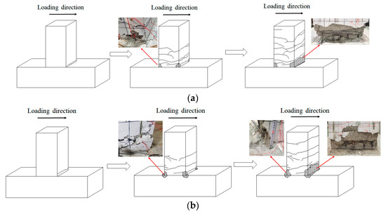 Damage process in the specimens: (a) CIP specimen; (b) PSC specimen.