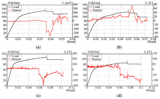 3.3. Results of Cyclic Loading Tests and Piezoelectric Sensor Output