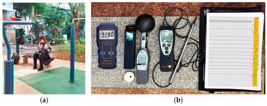 - Zhao, X.; Bian, Q.; Hou, Y.; Zhang, B. A study on the correlation between spring leisure physical activity levels and microclimate thermal comfort in cold city parks. Chin. Landsc. Arch. 2019, 35, 80–85. (In Chinese) [Google Scholar] [CrossRef]