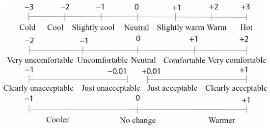 - ISO 10551-2019; Ergonomics of the Physical Environment—Subjective Judgement Scales for Assessing Physical Environments. International Organization for Standardization: Geneva, Switzerland, 2019.