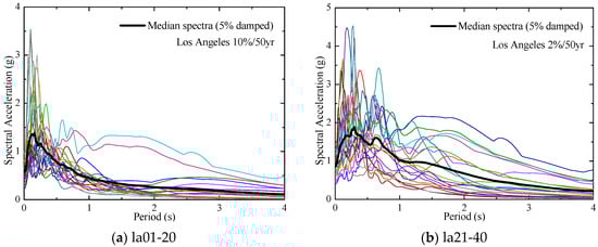 - A numerical analysis model of a nine-story CFDST frame-BRW structure was established, and ground motion records were selected from the SAC project to describe the seismic risks in the Los Angeles area of the US States, which were divided into two risk levels of 2%/50 years and 10%/50 years. This model uses nonlinear time history analysis and incremental dynamic analysis on the selected records.