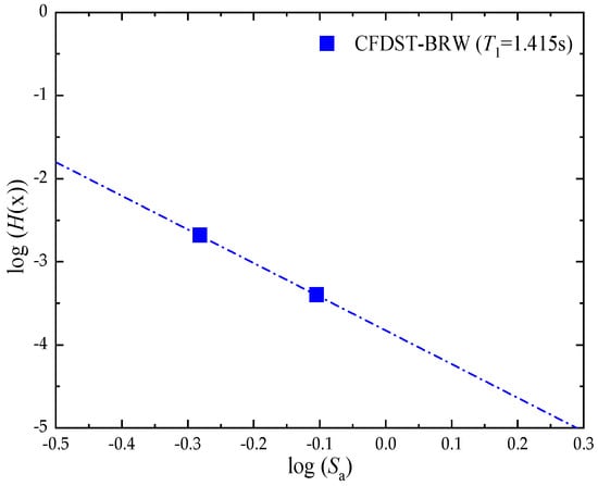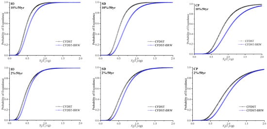 - The analysis model’s fragility curves were established using three determined performance limits and structural responses. The annual probability of these three limits and the probability of collapse within 50 years were determined by convoluting the fragility with the seismic risk specified by the USGS.
