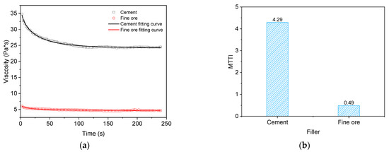 Effect of filler type on thixotropy. (a) Thixotropy fitting results of different fillers; (b) MTTI calculation results of different fillers.