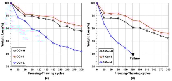 - The samples with low levels of vibration were vulnerable to freezing and thawing, and F-CON-L did not satisfy the criteria suggested by KS F 2456. In addition, CON-L had lower freezing and thawing resistance than other samples, which suggested that the durability of the concrete could not be assured if inappropriate vibration was applied.