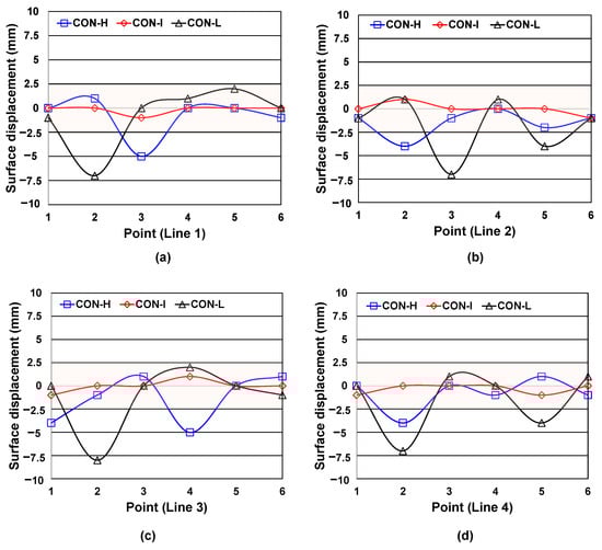3.3.2. Surface Displacement Variation (IRI Measurement)