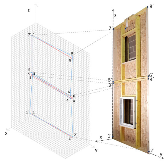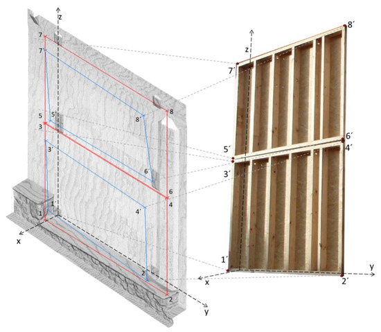 - A lack of awareness of the facade’s wall geometry in terms of the placed wall’s geometry, which is not planar, or at least has deviations of up to 100 mm; walls and floors do not fulfill the planar geometric requirements that are necessary for placing accurately prefabricated 2D modules. In a previous phase of this research [11], several facades were measured using 3D laser scanning tools (Figure 3).