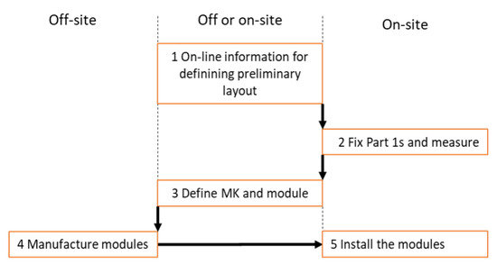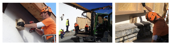 - Iturralde, K.; Linner, T.; Bock, T. First Monitoring and Analysis of the Manufacturing and Installation Process of Timber Based 2D Modules for Accomplishing a Future Robotic Building Envelope Upgrading. In Proceedings of the International Symposium on Automation and Robotics in Construction (IAARC), Taipei, Taiwan, 28 June–1 July 2017. [Google Scholar] [CrossRef]