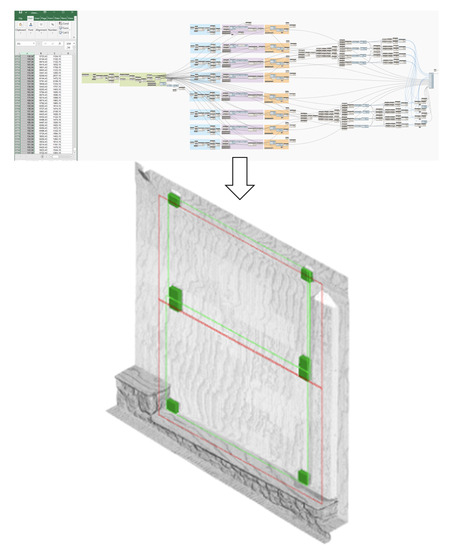 - Phase 3.2. After the minor processing of the Point Cloud, the point coordinates taken with the Total Station and the Point Cloud were inserted in Dynamo™. The georeferenced Point Cloud and the coordination of Part 1s were set up in the same Dynamo™ algorithm.