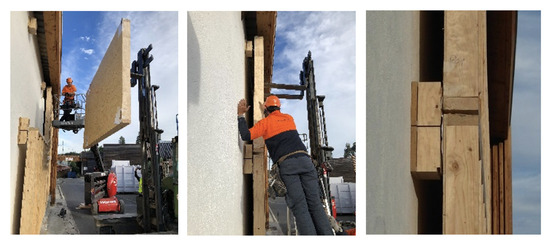 - Sandberg, K.; Orskaug, T.; Andersson, A. Prefabricated Wood Elements for Sustainable Renovation of Residential Building Façades. Energy Procedia 2016, 96, 756–767. [Google Scholar] [CrossRef]