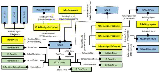 In the above equations, IfcTaskTime and IfcTaskTime represent the ‘IfcTaskTime’ entity of sub-task ‘n’ and main task ‘i’ associated with the building component, respectively, while min and max are the minimum and maximum parameters from the N number of total sub-tasks having attributes: ScheduleStart, ScheduleFinish, and ScheduleDuration.
