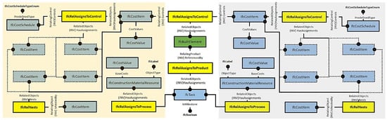 In the end, the ‘IfcCostItem’ entity representing the cost of the building component is also estimated for updating using Equation (4). It is based on the total costs of all the task(s) that are required for the completion of a building component, and the task costs are stored under the ‘IfcConstructionMaterialResource’ entity.
