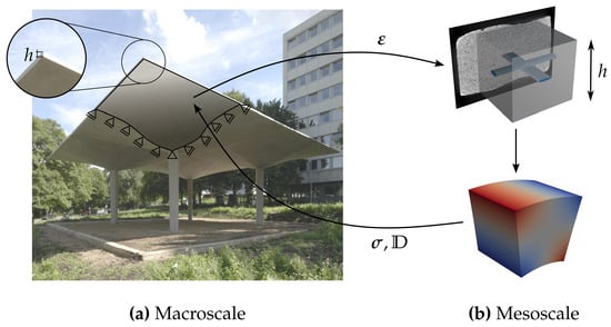 - Gruttmann, F.; Wagner, W. A coupled two-scale shell model with applications to layered structures. Int. J. Numer. Methods Eng. 2013, 94, 1233–1254. [Google Scholar] [CrossRef]