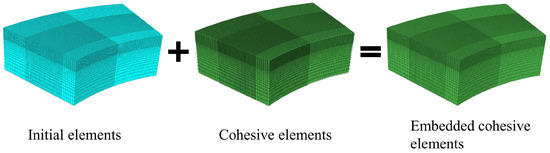 The zero-thickness cohesive element is then inserted into the initial finite element, as shown in Figure 3. Finally, numerical models of rocks containing solid and zero-thickness cohesive elements have been developed. The model contains 289,680 C3D8R (eight-node first-order reduction integral element) units and 854,878 COH3D8 (8-node three-dimensional cohesive element) units.