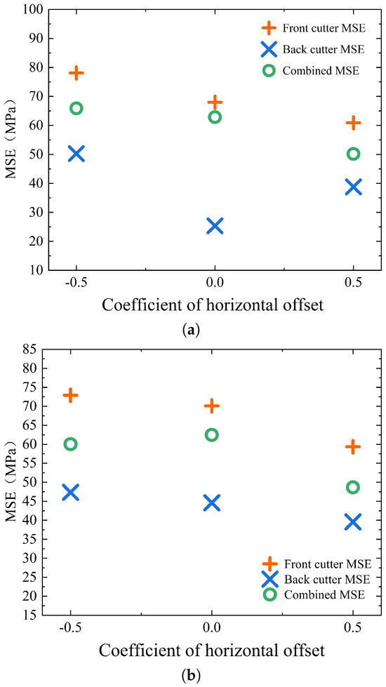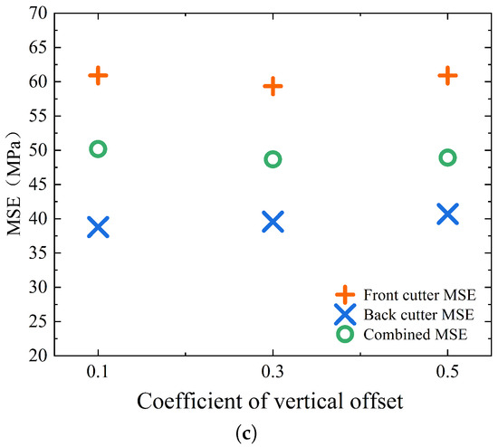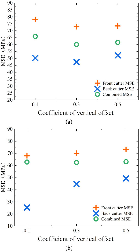 Figure 8 shows the MSE values for different cutting depths. In particular, it should be noted that the depth of cut in Figure 8 refers to the cutting depth of the front cutter for dual-cutter cutting, and the cutting depth of the back cutter is fixed at mm.