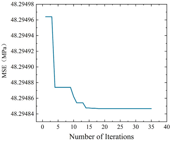 As shown in Figure 17, the curve of MSE values approaches the level after about 20 iterations, indicating that the optimal value has been reached by this time. The optimal parameters are given in Table 6. The optimal vertical offset coefficient is 0.641, and the optimal horizontal offset coefficient is 0.497.