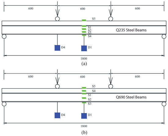 Instrumentation plan: (a) Q235 beams; (b) Q690 beams.