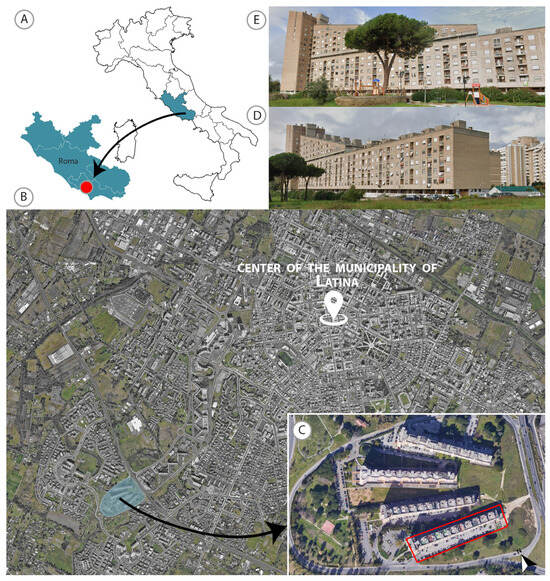 The proposed methodology was tested on a large-scale social housing building in the city of Latina (Italy). Latina is an Italian town of 126,992 inhabitants. It is the second largest city in Lazio, preceded only by Rome (