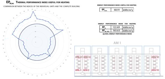If only the five AM1 are considered, of a total of 50 apartments, the mean global energy performance index for the entire building (EP