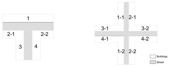 In the optimizing experiment, for the form of “T”-shaped turnouts in the street (see Figure 10), the population state tended to be stable after the simulation with 10 iterations. The “T”-shaped turnouts in the street were optimized to take the first 10% of the values, shown in Table 11.