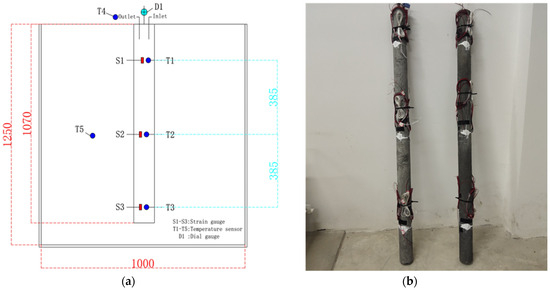 Distribution of experimental measuring points: (a) Diagram of measuring point distribution; (b) temperature and strain test points of pile body.