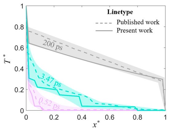 - Mao, Y.D.; Xu, M.T. Lattice Boltzmann numerical analysis of heat transfer in nano-scale silicon films induced by ultra-fast laser heating. Int. J. Therm. Sci. 2015, 89, 210–221. [Google Scholar] [CrossRef]