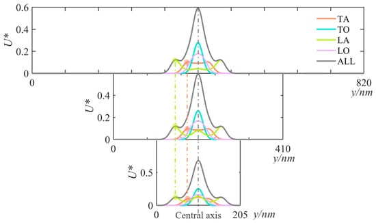 - The propagation speed and transfer performance of different phonon branches determine the distribution and fluctuation characteristics of energy. The LA and TA phonon branches have the faster propagation speed and high energy transfer efficiency, while the TO and LO phonon branches have the slower propagation speed and poorer transfer performance, resulting in less energy accumulation in the longitudinal direction and difficulty in forming significant thermal wave phenomena.