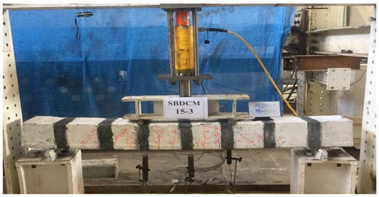 To complement the visual exploration, Figure 13 provides a schematic representation of the BDCM (15-1) beam. This visualization serves as a powerful tool for unraveling the structural design and features of the beam, offering a deeper understanding of the physical characteristics that contribute to its response under various loading conditions. The meticulous examination of compliance, crack propagation, and image processing methods has yielded a nuanced understanding of the structural behavior of the SBDCM specimens. The interplay between FRP presence, crack patterns, and methodological nuances contributes to a rich tapestry of insights, laying the groundwork for advancements in structural analysis and design considerations.