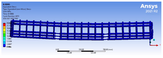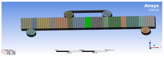 To complement the analytical insights, Figure 19 provides a numerical schematic representation of the BDCM (15-3) beam. This visualization serves as a powerful tool for elucidating the structural design and features of the beam, offering detailed insights into the factors that govern its response under diverse loading conditions. The overarching compliance with the SBDCM modes, coupled with the nuanced performance of the KNN and SVM methods, highlight the intricacies of the structural behavior under different scenarios. The heightened response accuracy for the 15-specimen case underscores the significance of central damage in influencing outcomes. The numerical schematic representation further enhances our understanding, providing a visual roadmap to unravel the complexities of the BDCM (15-3) beam’s structural dynamics. These findings contribute valuable insights into the broader exploration of image processing and numerical modeling in structural analysis and design.