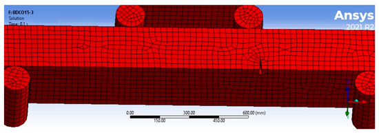 The numerical model for the RC beam of CB type was meticulously constructed using Ansys® Academic Research Mechanical, Release 2021 R2 software, as depicted in Figure 6. This sophisticated representation serves as a pivotal tool for comprehending the structural intricacies and failure mechanisms inherent in CB beams. Furthermore, Figure 7 provides a visual insight into the image processing techniques employed to analyze cracks in the CB beams. The intricate details captured through image processing offer a comprehensive understanding of the crack patterns, contributing valuable insights into the structural integrity of the CB beams under examination. Figure 8 extends this exploration by illustrating the application of image processing to the detection and analysis of cracks in the CB beams. This visual representation serves as a testament to the effectiveness of the employed image processing techniques, showcasing their capability to discern and analyze the intricate details associated with crack formation and propagation. The meticulous examination of compliance modes, coupled with the nuanced analysis of image processing methods, has provided a rich reservoir of insights into the behavior of CB beams under various conditions. The combination of experimental observations, numerical modeling, and image processing techniques has facilitated a holistic understanding of the structural performance and failure mechanisms of the Cantilever-Bracket beams.