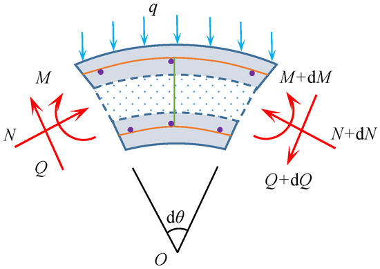 The related research shows that before the yield of the connectors, the inner and outer wythes of the sandwich panel show a linear and fully combined action mode [3], while for the sandwich panel structure with a weak connection between the inner and outer wythes, the action mode is fully independent. Figure 2 shows the internal force couplings of the arched concrete sandwich panel structure under transverse load.