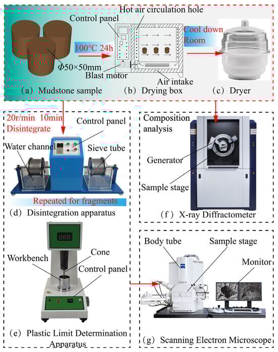 - Huang, K.; Kang, B.; Zha, F.; Li, Y.; Zhang, Q.; Chu, C. Disintegration characteristics and mechanism of red-bed argillaceous siltstone under drying–wetting cycle. Environ. Earth Sci. 2022, 81, 336. [Google Scholar] [CrossRef]