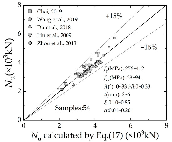 | Nu | test ultimate axial load, in kN |
