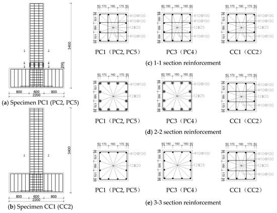 Prefabricated constructions have many advantages over traditional constructions. Liu [1] expounds the view that prefabricated buildings can effectively help realize the industrialization of construction projects and thus reduce the energy consumption of construction sites. In the past 10 years, the research on prefabricated concrete structures has been intensified, and much of the experimentation, modeling, and theoretical research has been done on precast concrete structure components (precast composite column) [2,3,4], material properties [5,6,7], structural vibration behaviors [8,9], node connections [10,11,12], construction method [13,14], or other points of prefabricated modular buildings. Ou [2] compared the seismic performance difference between an ultra-high-performance concrete (UHPC) prefabricated pipe concrete composite column and a conventional reinforced concrete column (RC column), and found that the stiffness, yield load, and ductility performance of the UHPC prefabricated composite column were better than those of the RC column in quasi-static tests. Ahmed [5] conducted a feasibility assessment of mass timber as a mainstream building material in prefabricated construction, attributing the main benefits to the low labor in the construction process, aesthetic appeal, and prefabricated characteristics of timber panels. A near-surface-mounted fiber-reinforced polymer pile-splice system has been studied in Dolati’s research [7] for prestressed precast concrete piles. Sun [11] proposed a new prefabricated beam–column node using a mechanical connection, which improved the seismic performance of prefabricated columns compared with sleeve-grouted-node specimens during the quasi-static test. Chourasia et al. [15] reviewed the modular structural system, modular node connection, design criteria and seismic performance, and proposed that node connection is the most important thing in modular buildings. It is pointed out that the extensive application of prefabricated modular buildings is hindered by the understanding of connections, the lack of design guidelines, the lack of experimental investigation of prefabricated modular buildings, and the limitations of transportation and treatment. At present, the joints of prefabricated specimens are usually connected in two ways: one is a wet connection using a grouting sleeve, and the other is a dry connection using a cold extrusion sleeve.