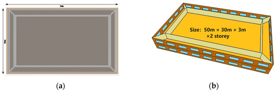 32]. The building, measuring 50 m × 30 m, serves as a two-story office, as shown in