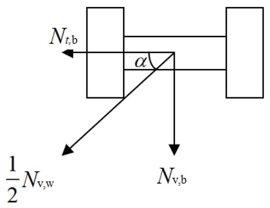 Through a force analysis, it is discerned that the internal forces generated within the tension field will be collectively transmitted by both the shear-resistant bolt connection and the tension-resistant bolt connection to the U-shaped connection plate welded onto the beam. Assuming an equitable distribution of 50% internal forces to each type of bolt connection within the tension band, as shown in Figure 3, the design of the tension-resistant bolts can be executed using the subsequent equations.