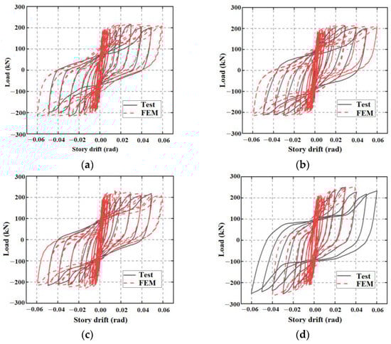 Hysteretic curves comparison. (a) U-1; (b) U-2; (c) U-3; (d) U-4.