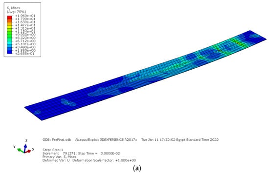 - Furthermore, the finite element model’s results demonstrated congruence with the experimental outcomes, affirming the efficacy of the presented model. Notably, the maximum difference in the ultimate load for the prestressed concrete beams, strengthened with respect to their flexural properties, was approximately 5%, and the mid-span deflection showed a variance of about 9%.