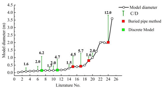 In the background, the radius of the shield machine model and excavation distance C/D (excavation length/tunnel diameter) are shown in Figure 1. It shows that the radius of the shield machine model increases exponentially with the increase in excavation distance. This is because the long-distance model test requires a more fully functional shield machine model and enough space to accommodate the equipment.