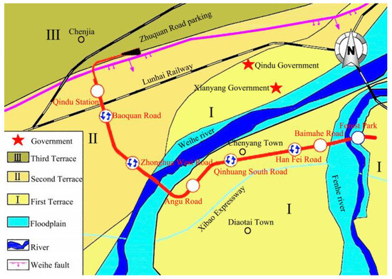 The case study is based on Xi’an Metro Line 1, located in the middle of the Weihe Fault Basin near the fracture zone on the north bank of the Weihe River (Figure 2). There are uncertainties in the project, such as river water, fracture zone, and loess, so the whole shield model test process needs to ensure the project’s safety. The project uses an SPB (Slurry Pressure Balance Shield); the basic information is shown in Table 1.