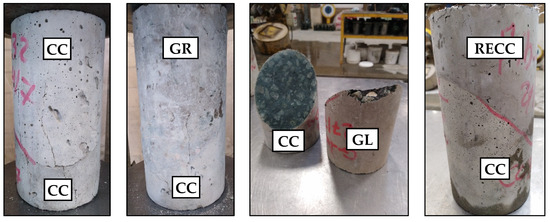 - Concrete joints in beams produced partially with GC mixes showed bending strengths lower than those of joints produced with the CC mix by up to 36%; however, the joints produced partially with RECC mix showed a relatively higher bending strength by 43%. This indicated the superiority of RECC in repairing concrete beams subjected to bending load.