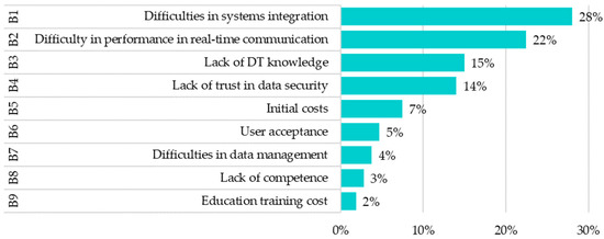 Based on an analysis of 37 studies about DT technologies for FSM, Table 2 summarizes the nine identified barriers, presented and ranked according to their frequency of occurrence.