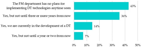 To gather insights, this study presents various industries’ responses to a questionnaire seeking to identify the potential challenges and barriers FM organizations may encounter in fully adopting DT technology. The findings of our research will serve as a foundation for future investigations in this field. The findings of this study analyze the data gathered and insights gained from the literature review and the questionnaire survey results. This study extracted the main challenges and barriers hindering DT adoption, including technical, economic, and stakeholder-related barriers. Future research should explore economically viable solutions for addressing technical barriers and ensure stakeholder engagement to ensure inclusiveness, validity, and effective decision making.