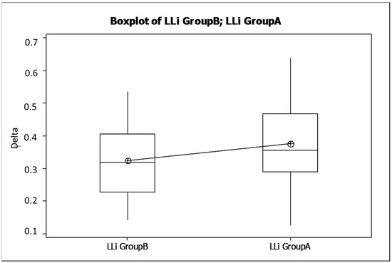 Finally, we tested the mean difference of the LLi between the two groups (GroupB and GroupA) to verify if there is a significant difference in the Land Value Ratio before and after densification.