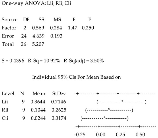 ANOVA test results of the annual variation for Land Leverage and Residential and Construction Costs Indexes (, , and ).